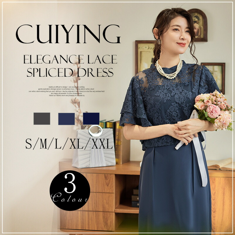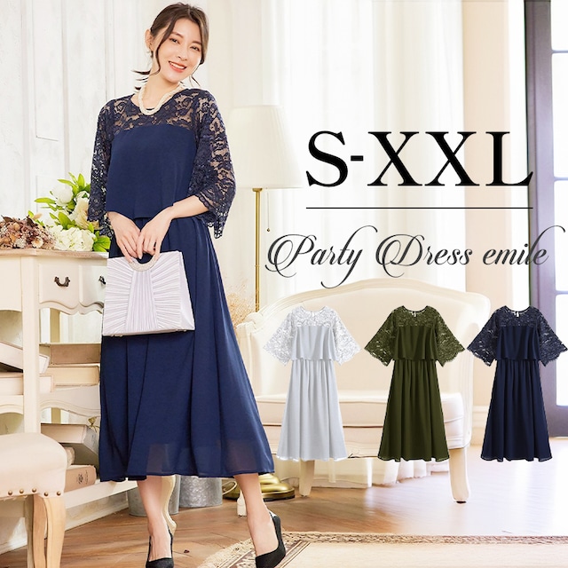パーティードレス ワンピース ビジュードレス ミディアムドレス レース シフォン ドレープ 袖有り 膝丈 ハーフ丈