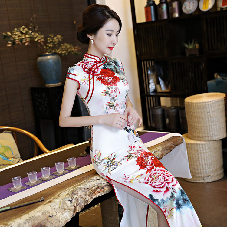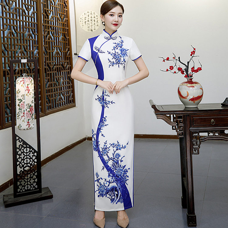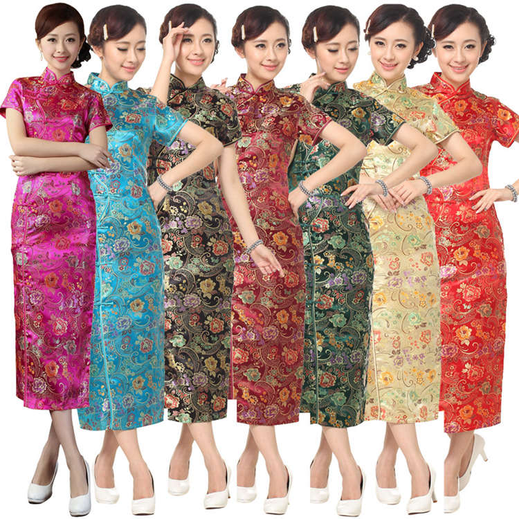 チャイナドレス ワンピース ロング丈 花柄 ステージ衣装 ハロウィン 仮装 余興 タイト セクシー 結婚式 民族風 レディース シルエット 半袖 イベント エレガント 優雅 パーティードレス