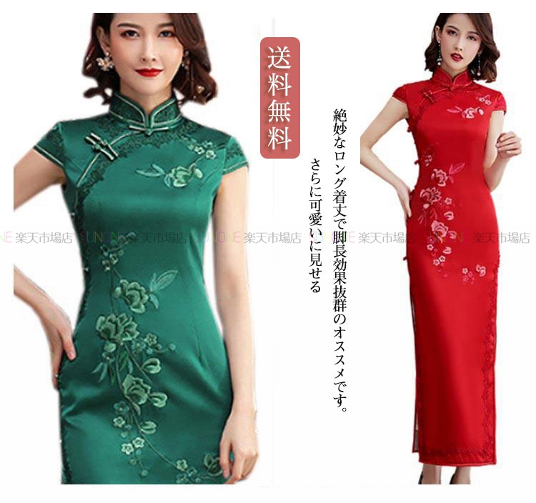 チャイナドレス レディース パーティードレス 女性 マキシ丈 チャイナ服 ワンピース スリット ワンピ ドレス チャイナ服 中華服 民族衣装 ロング丈
