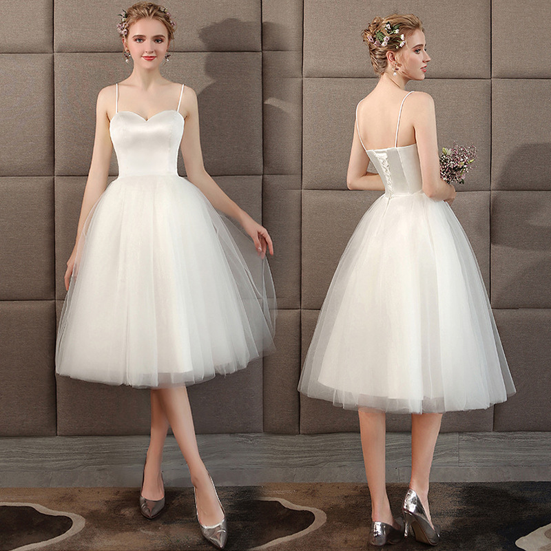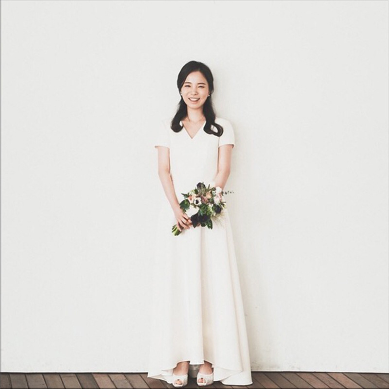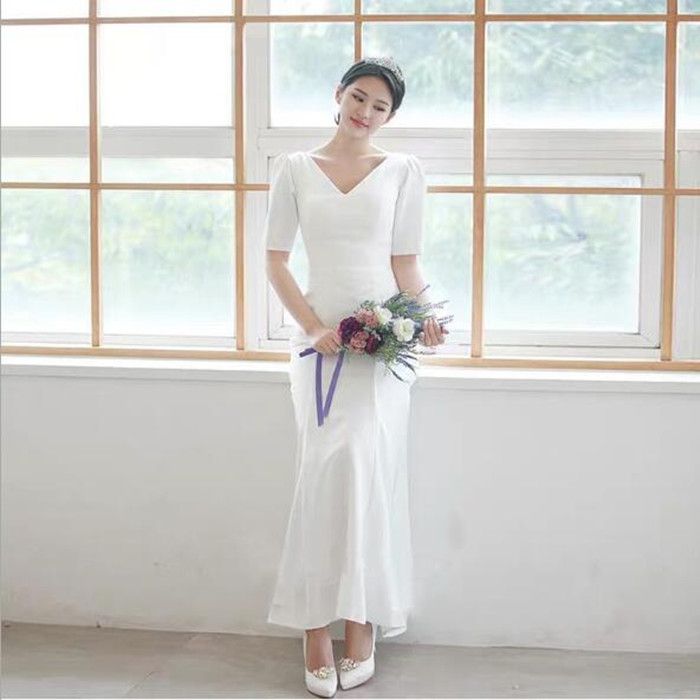 ウエディングドレス 半袖 ミモレ丈 ワンピース 二次会 ライン 前撮り 後撮り 花嫁二次会 結婚式