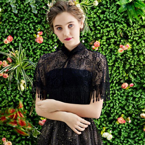 刺繍付きのボレロ 結婚式 披露宴 二次会 発表会のパーティードレスのコーディネートにおススメレディースファッション ドレス