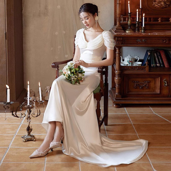 ウエディングドレス 二次会 ウェディグドレス ラインドレス 海外挙式 前撮り 花嫁二次会 大きいサイズ 結婚式 披露宴 パーティードレス トレーン
