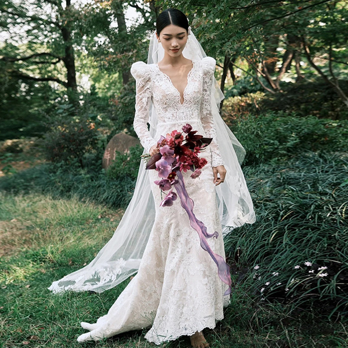 ウエディングドレス 長袖 二次会 ウェディグドレス マーメイドラインドレス 海外挙式 前撮り 花嫁二次会 大きいサイズ 結婚式 披露宴 パーティードレス トレーン