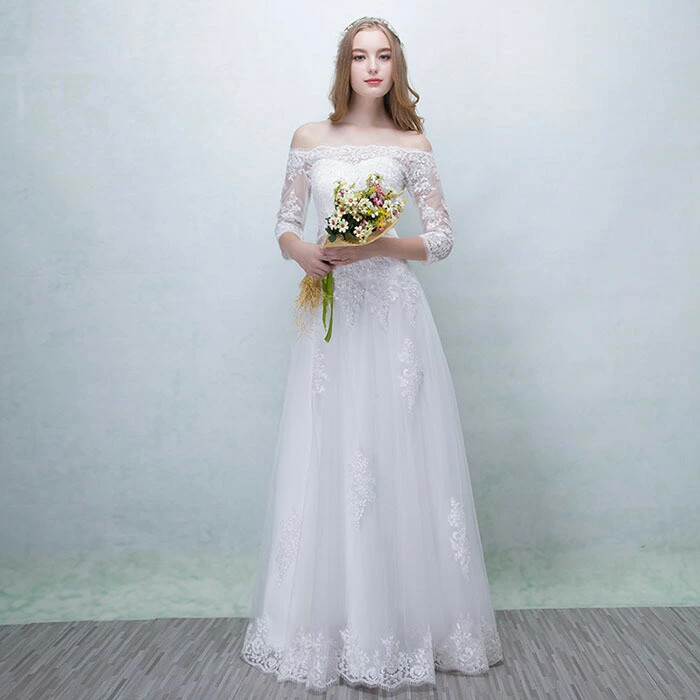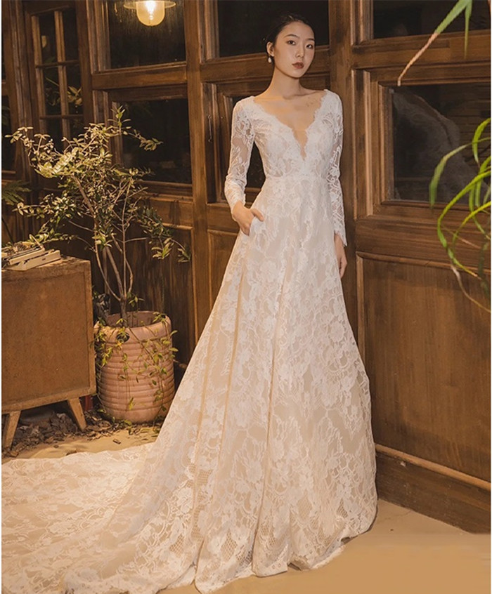 ウエディングドレス 袖あり 二次会 オーダーメイドも可能 ウェディグドレス ラインドレス 海外挙式 前撮り 花嫁二次会 大きいサイズ 結婚式 披露宴 パーティードレス