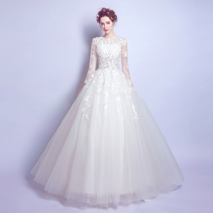 ウエディングドレス 長袖 袖あり 二次会 ウェディグドレス Aラインドレス 海外挙式 前撮り 花嫁二次会 大きいサイズ 結婚式 披露宴 パーティードレス