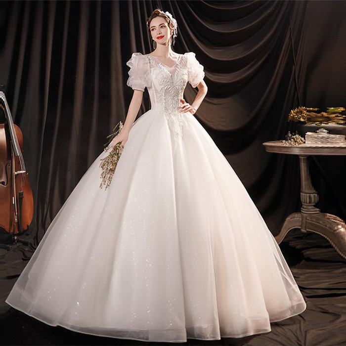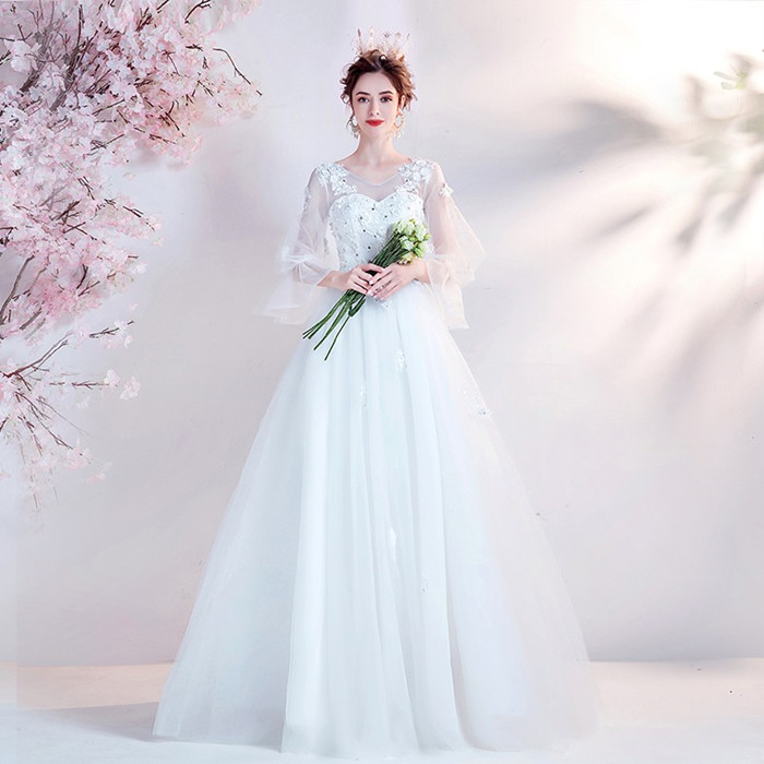 ウエディングドレス 袖あり 二次会 オーダーメイドも可能 ウェディグドレス Aラインドレス 海外挙式 前撮り 花嫁二次会 大きいサイズ 結婚式 披露宴 パーティードレス