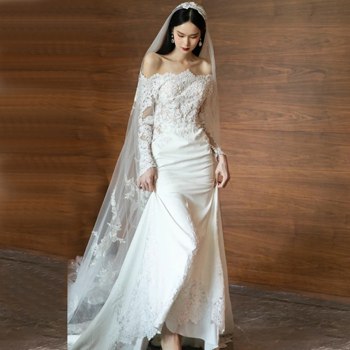 ウエディングドレス 長袖 二次会 ウェディグドレス マーメイドラインドレス 海外挙式 前撮り 花嫁二次会 大きいサイズ 結婚式 披露宴 パーティードレス トレーン