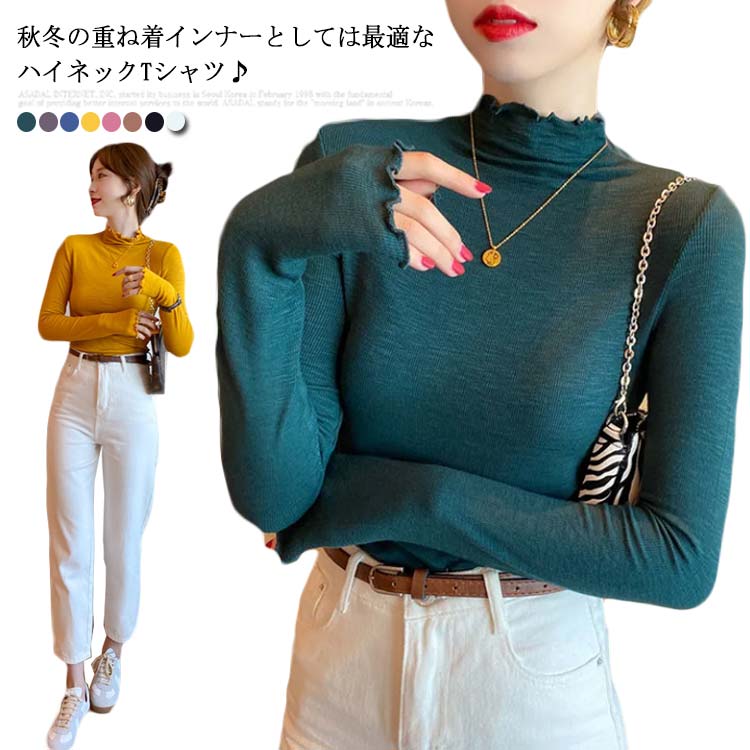Tシャツ レディース ハイネック タイトTシャツ トップス プルオーバー 重ね着 レイヤード 秋新作 長袖 無地 薄手
