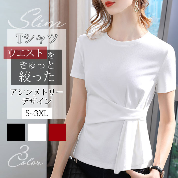 女性Tシャツ ファッション おしゃれ 上品 大人 光沢感 清新感満載 シンプル お洒落な雰囲気 フリーサイズ 裾にユニークなデザインが知的で魅力を引き出す 無地Uネックsweet