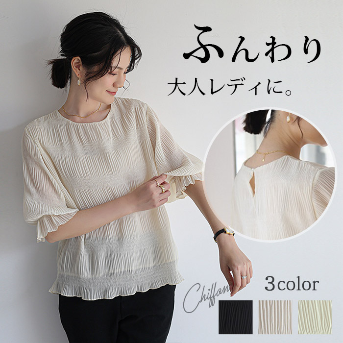 シフォンブラウス シアーブラウス ボリューム袖