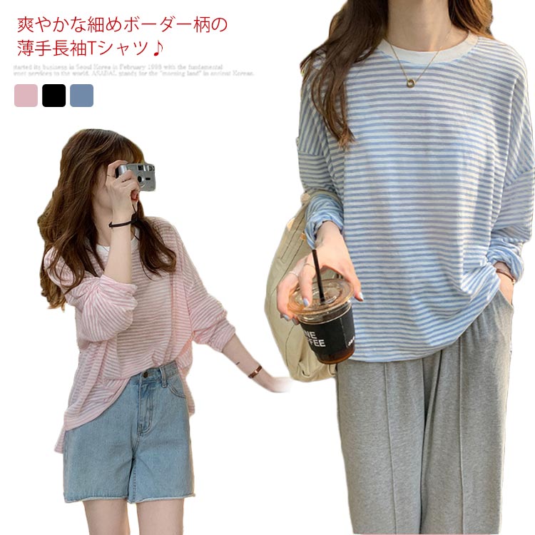 Tシャツ 長袖 レディース サマーパーカー 体型カバー ボーダー 春夏秋 薄手 涼しい UVカット 紫外線カット 紫外線対策 冷房対策 トップス