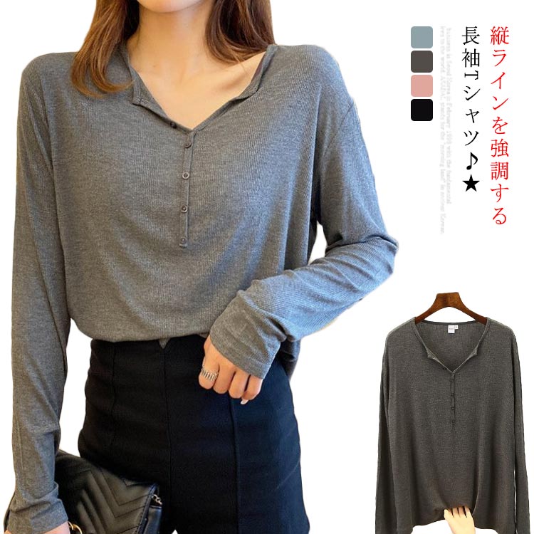 Tシャツ カットソー ロング丈 長袖 インナー お洒落 無地 韓国風 キレイめ シンプル カジュアル 普段着 クルーネック 薄手 レディース