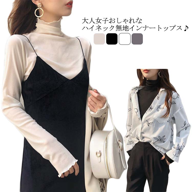 シャツ レディース ハイネック 長袖 無地 薄手 トップス プルオーバー 重ね着 レイヤード 秋新作