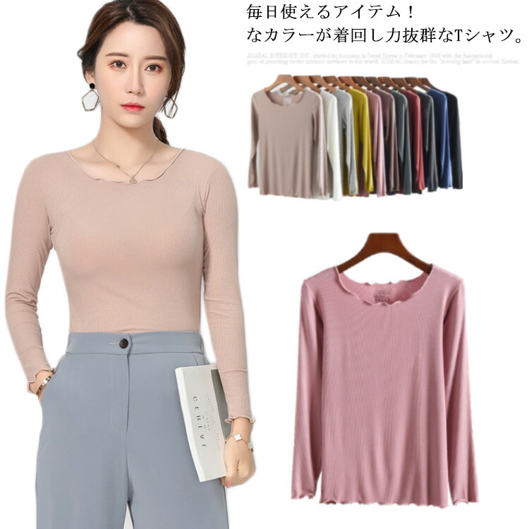 Tシャツ レディース 長袖 トップス ストレッチ 春秋服 無地 インナー 柔らかい お洒落 普段着 キレイめ シンプル カットソー