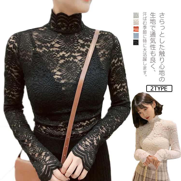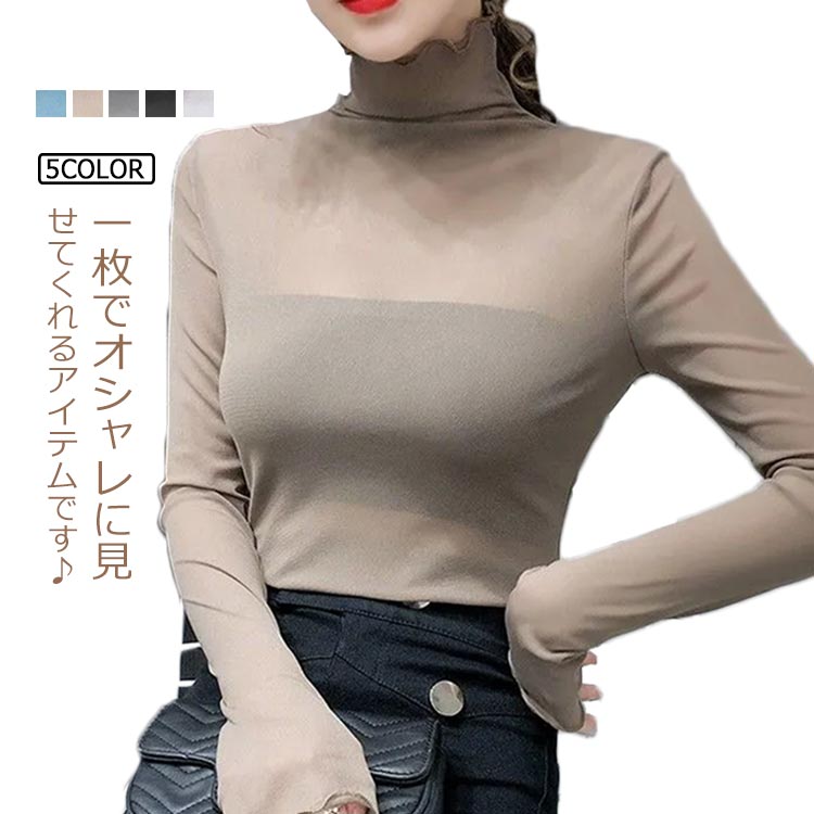 シアートップス ハイネック シースルー レディース レイヤード コーデ 重ね着 薄手 セクシー 韓国 人気