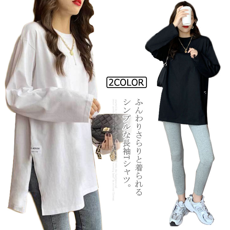 Tシャツ 長袖 レディース tシャツ ゆったり 体型カバー シンプル 無地 カジュアル オシャレ 春秋 秋新作 トップス カットソー 長袖tシャツ プルーオーバー