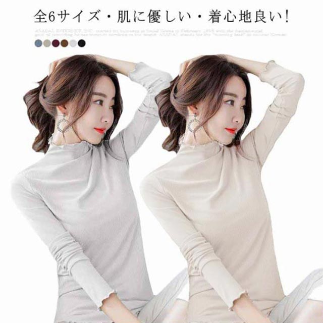 長袖カッ無地 トップス インナー 無地カットソー 綿 ネックカットソー タートルネック シャツ インナートップス トソー レディース カットソー ニット ハイネック
