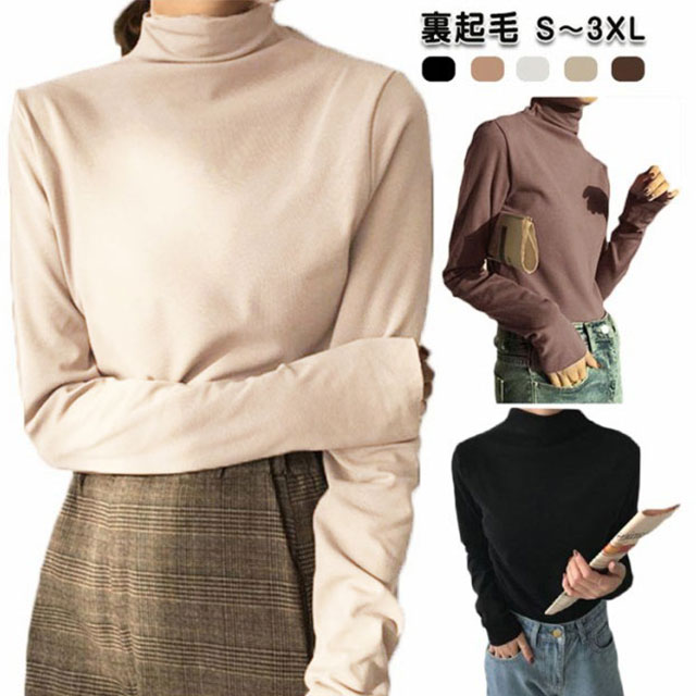 タートルネック 裏起毛 無地 あったか カットソー 長袖 レディース カットソー 長袖 トップス シャツ ロン インナー 無地