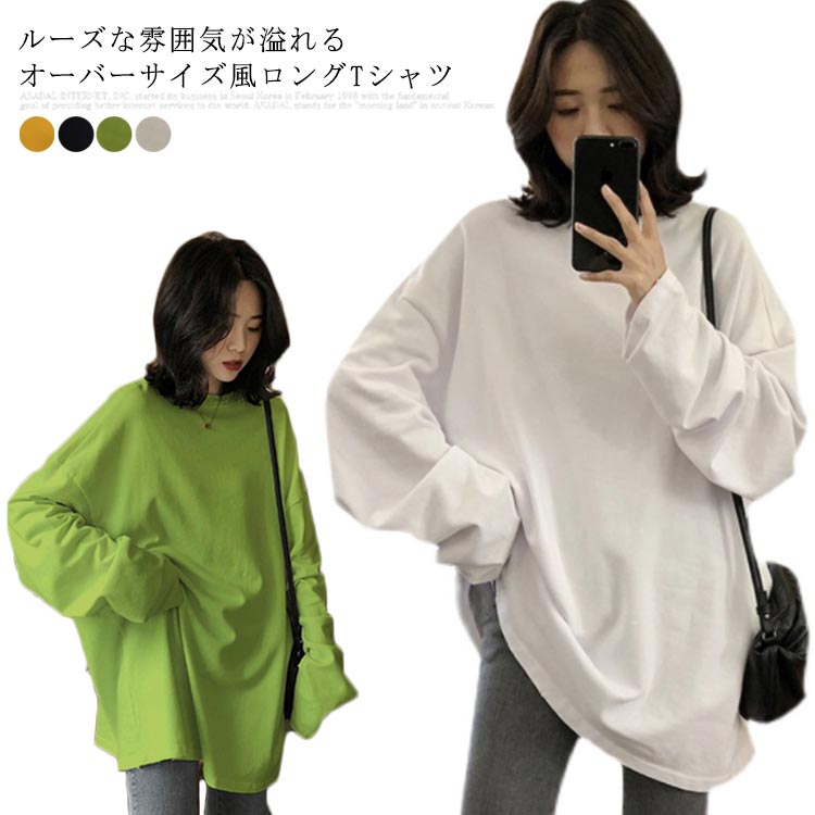 tシャツ レディース ロンT カットソー ロンティー ドロップショルダー 無地Tシャツ ゆったり ゆるTシャツ オーバーサイズ トップス 長袖 重ね着 長袖tシャツ ロング丈