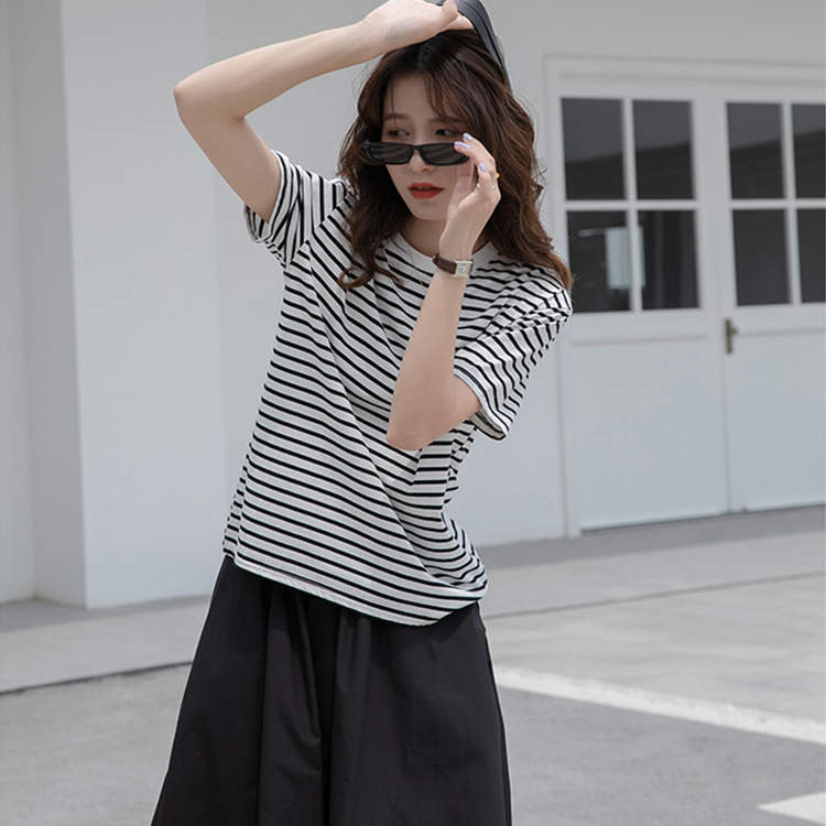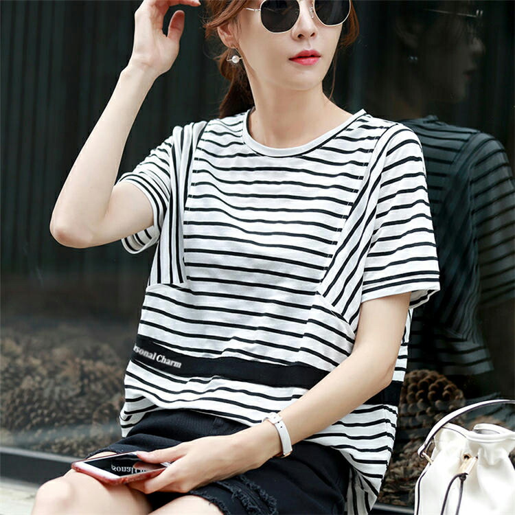 カジュアル Tシャツ レデイース シンプル ストライプ ゆったりレディースファッション トップス Tシャツ カットソー