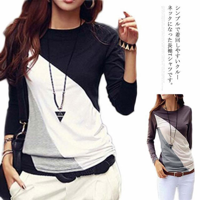 Tシャツ クールネック カットソー 長袖 トップス お洒落 春秋 通勤 部屋着 着痩せ カジュアル キレイめ
