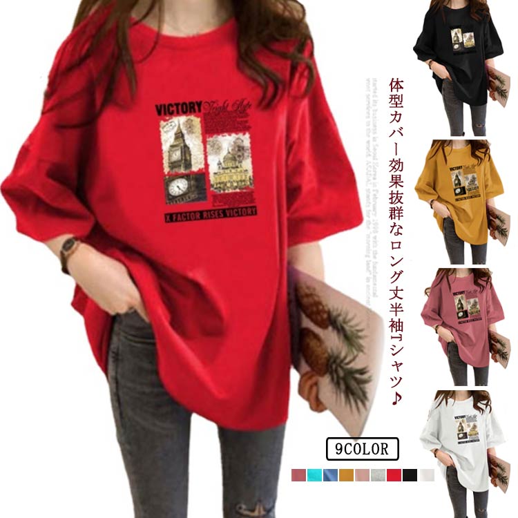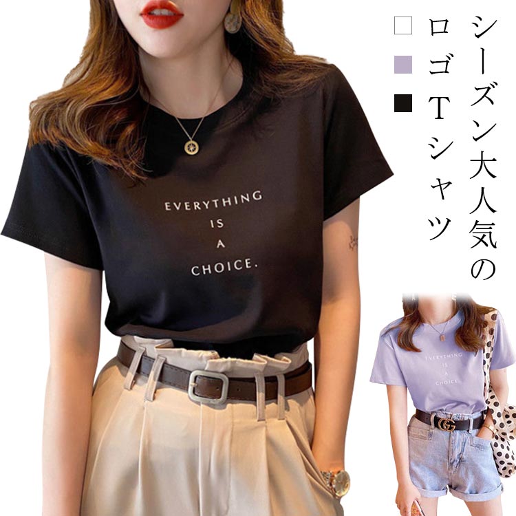 綿 レディース ゆるT ロゴTシャツ プリントTシャツ トップス ゆったり 透けにくい 透けない 春夏 ラウンドネック 丸首 半袖Tシャツ
