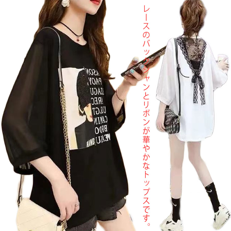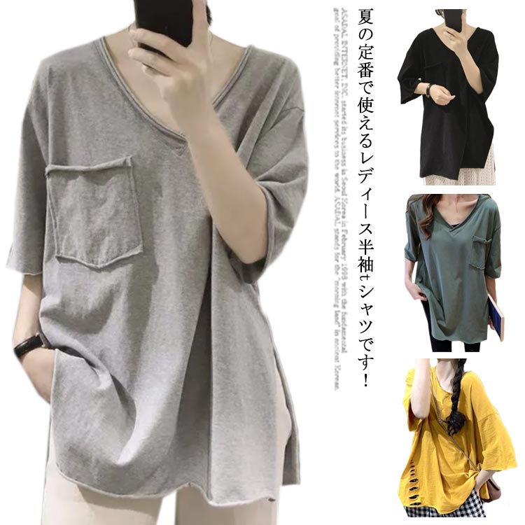 ゆったり レディース シャツ 半袖 半袖 シャツ ラウンドネック トップス カットソー ロン 薄手 無地 シャツ ロン