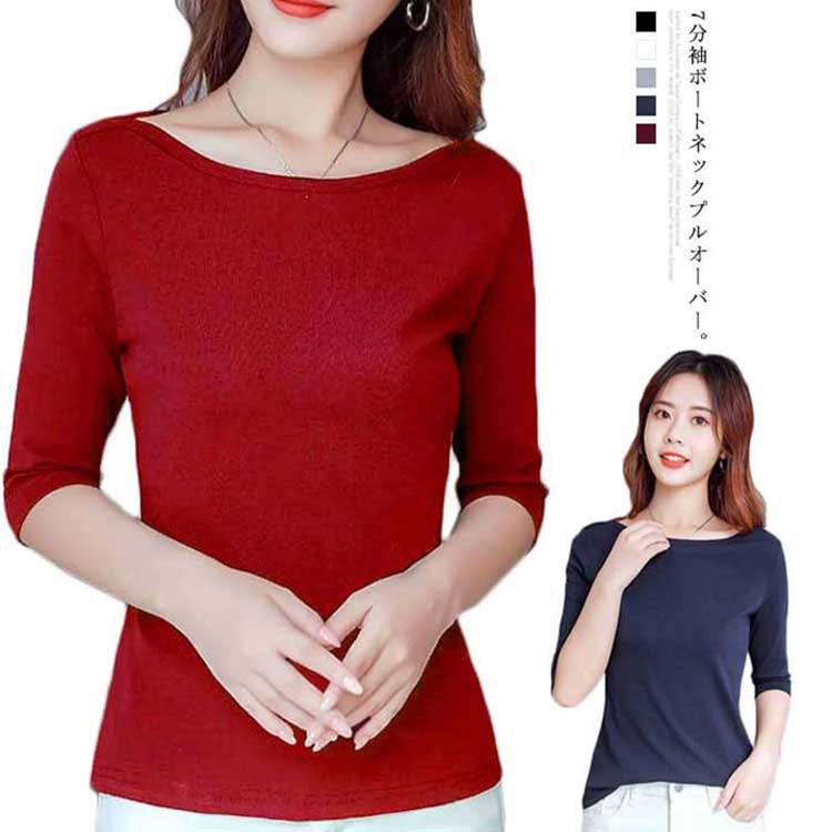Tシャツ レディース トップス 7分袖 カットソー tシャツ 七分袖 シンプル 無地 ロンT ボートネック 春 夏 秋