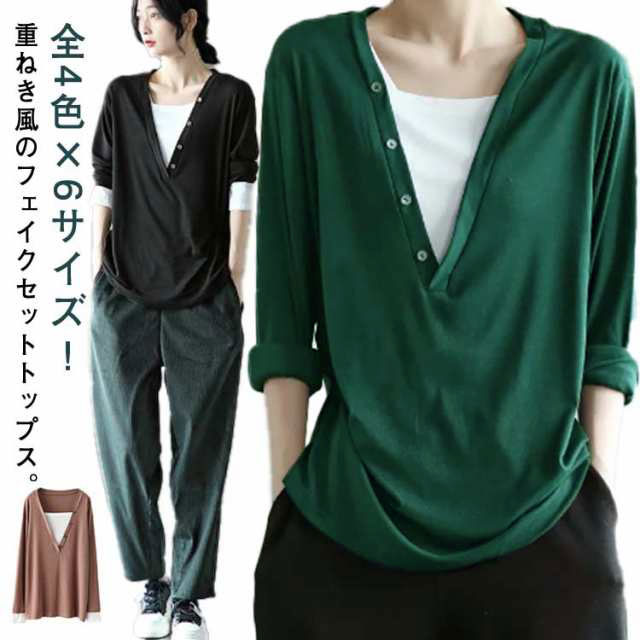 重ねき風 長袖tシャツ レディース レイヤード トップス tシャツ 大きサイズ ナチュラルレディースファッション トップス Tシャツ カットソー