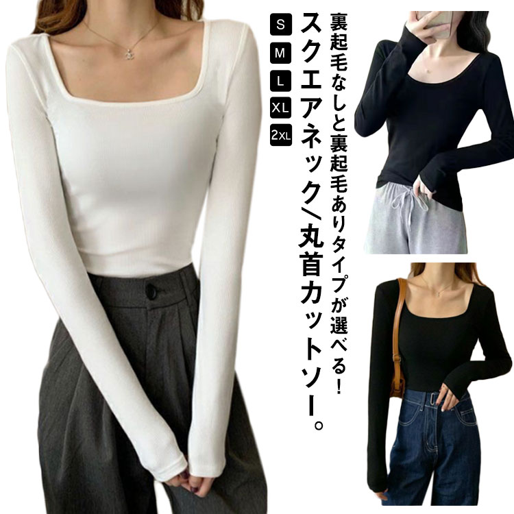 インナー レディース 裏起毛 カットソー スクエアネック 丸首 長袖 インナーレディースファッション トップス シャツ カットソー