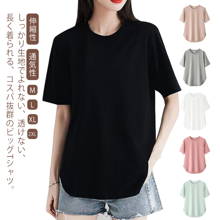 ゆったり レディース tシャツ 半袖 半袖 tシャツ ラウンドネック トップス カットソー ロンT 薄手 無地 tシャツ ロンt