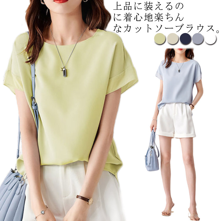半袖 レディース ブラウス きれいめ Tシャツ カットソー 夏服 シフォン インナー 大きいサイズ オフィス 体型カバー かわいい 通勤 トップス