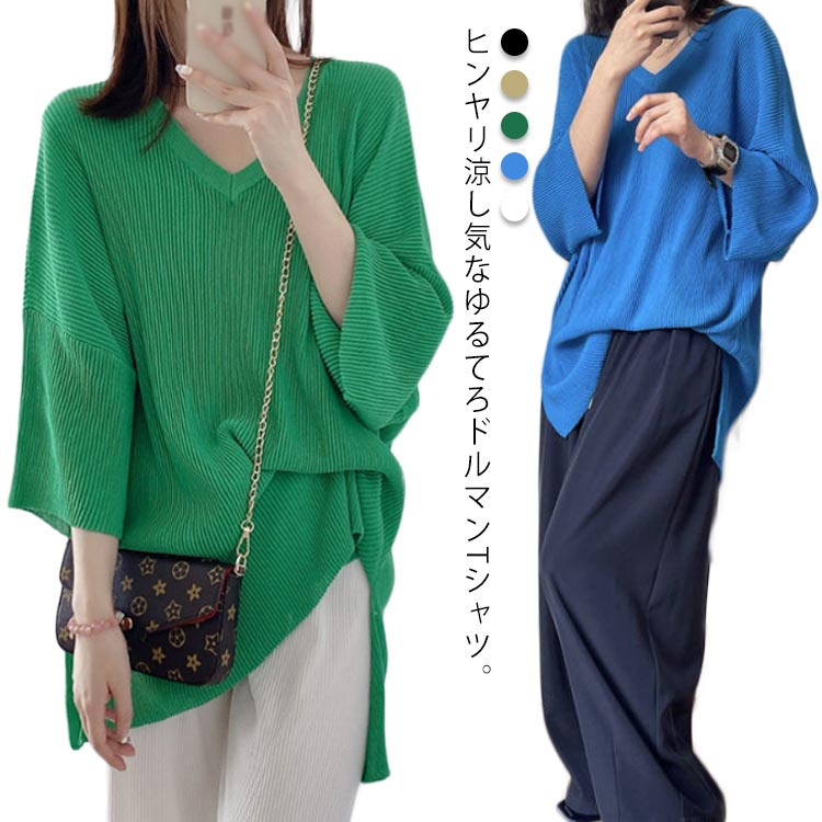 プルオーバー 裾リブ サマーニット 夏 春 レディースレディースファッション トップス Tシャツ カットソー
