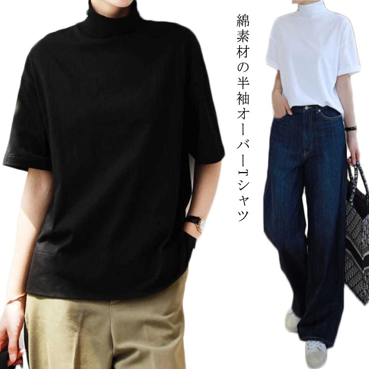 ハイネック tシャツ レディース トップス 半袖 綿 着心地いい 首元保護レディースファッション トップス Tシャツ カットソー