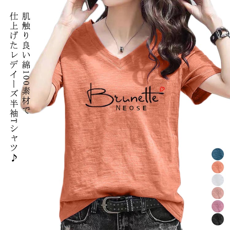 半袖tシャツ レディース ゆったり 半袖tシャツ 半袖Tシャツ 半袖 カットソー Vネック トップス 無地 英字 tシャツ