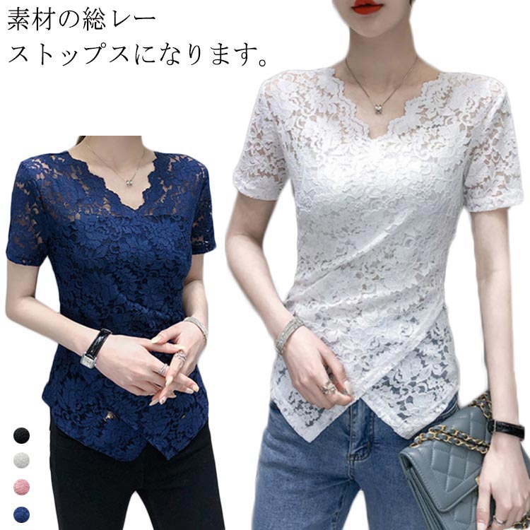 トップス カットソー シースルー 半袖 レディース シャツ レースレディースファッション トップス シャツ カットソー