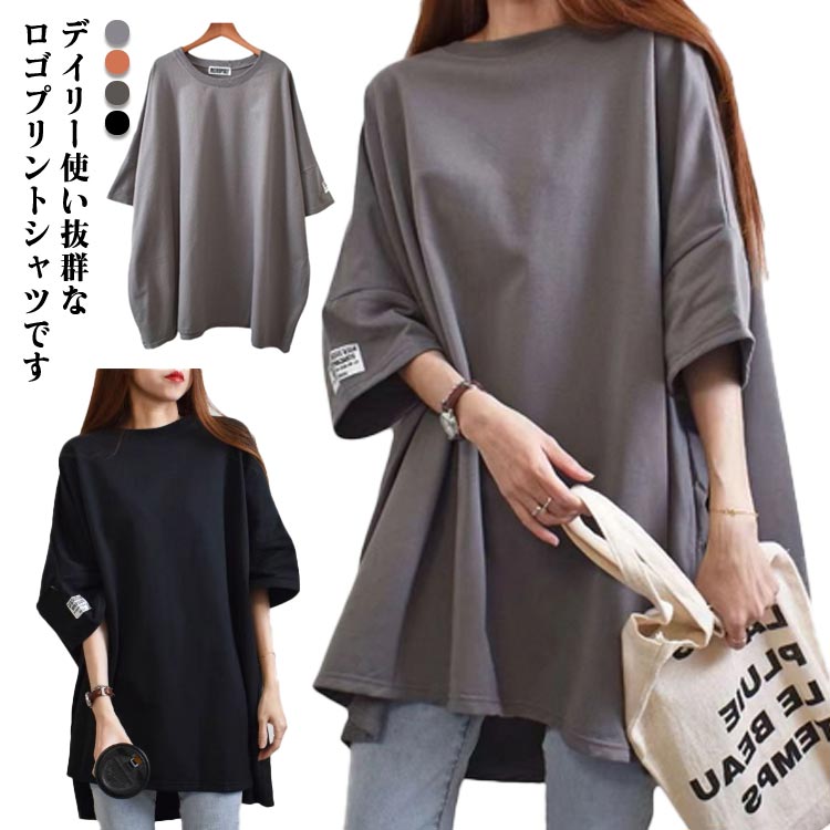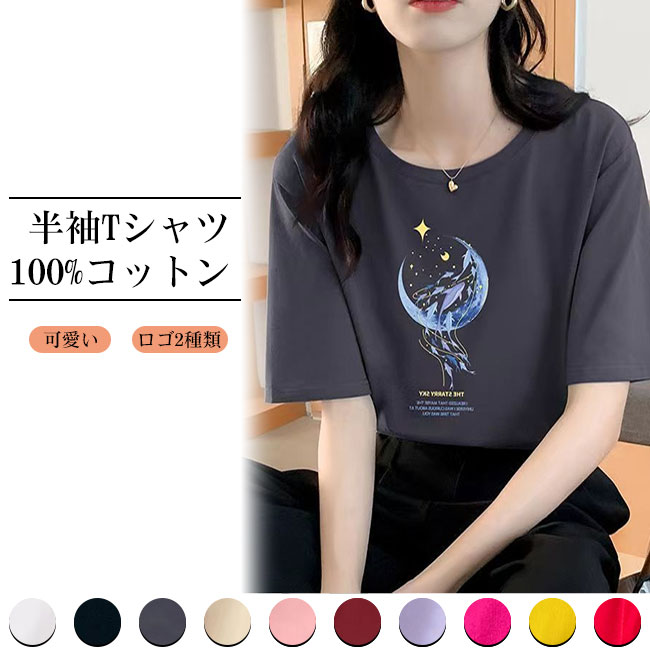 Tシャツ 半袖 レディース 半袖Tシャツ コットン カットソー トップス 半袖 コットン100% 綿100% ロゴ 着心地良い 肌触り良い カジュアル シンプル 伸縮性 ゆったり オーバーサイズ 夏