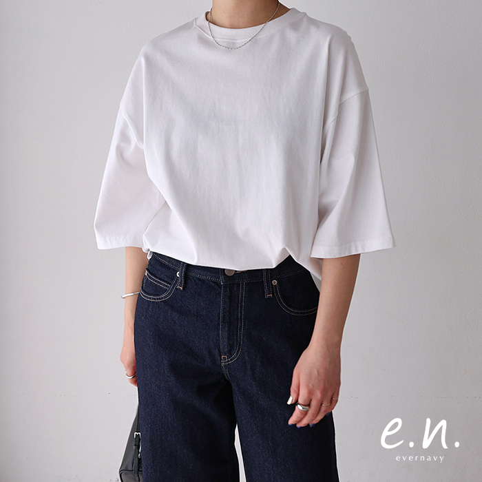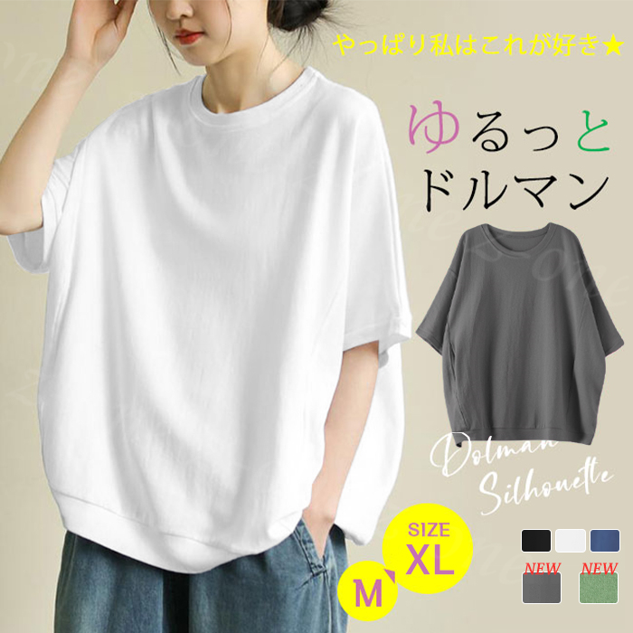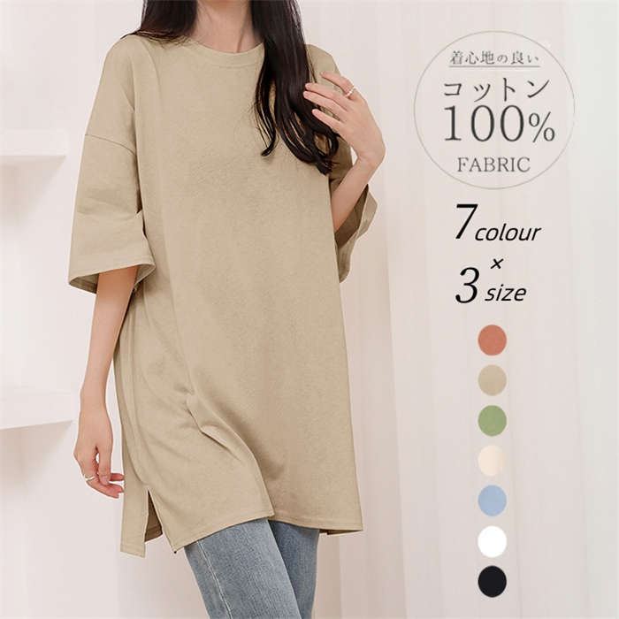 オーバーサイズ Tシャツ レディース 半袖 天竺編み コットン クルーネック ドロップショルダー 体型カバー シンプル ベーシック トレンド きれいめ 春 夏 秋