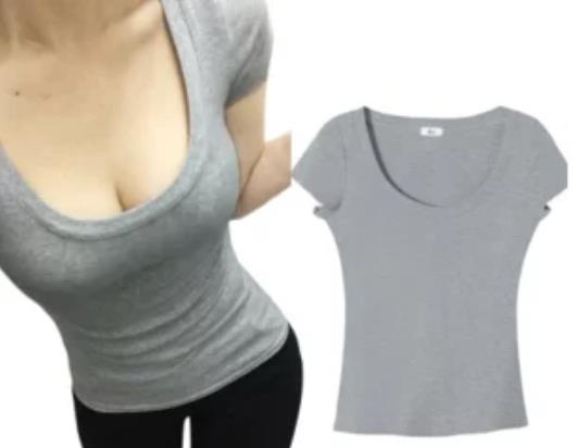 胸開き Tシャツ 半袖 ブラックホワイトブルーピンク Uネックレディースファッション トップス Tシャツ カットソー