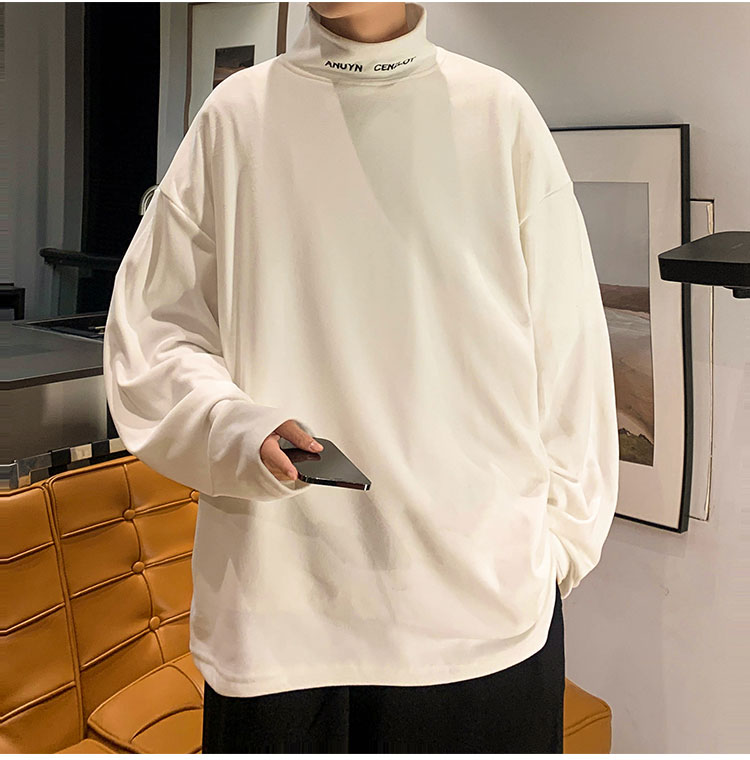 ロゴハイネックトップス2色長袖シャツカットソータートルネック白ホワイト黒ブラックシンプル無地インナーロントレーナー大きいサイズビッグゆったりダンス衣装ヒップホップレディースメンズストリ