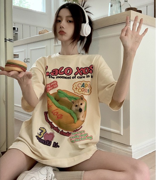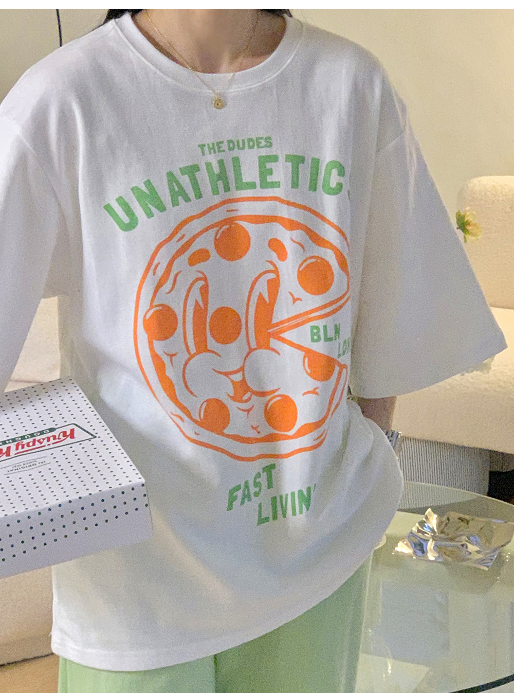 Tシャツ半袖ピザ柄カジュアル夏奇抜個性的韓国ファッション原宿系レディースシャツカットソーレディースシンプルトップス