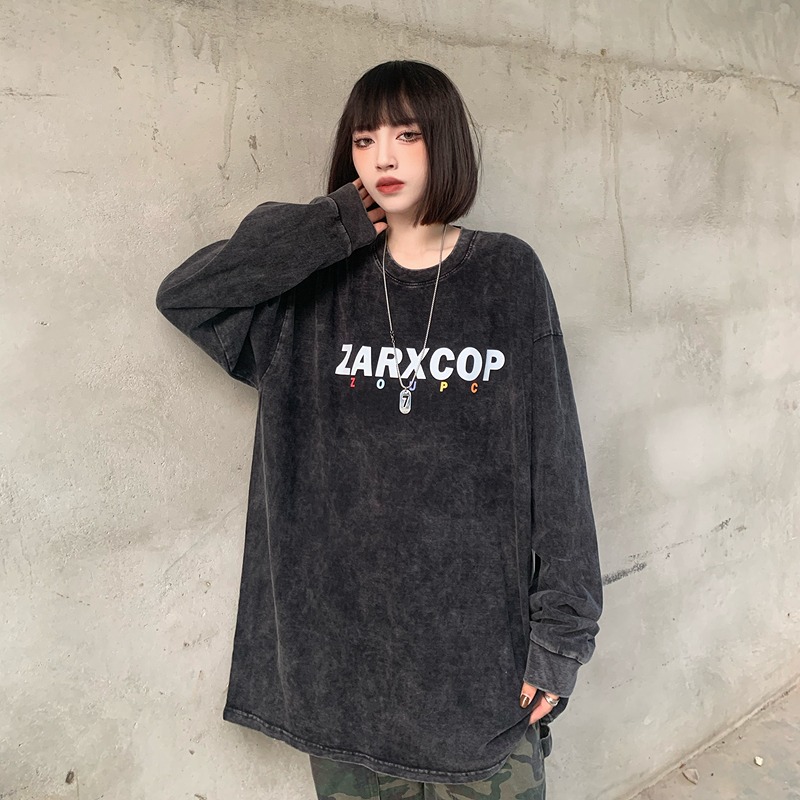 シャツ カットソー 長袖 グレーカラフル プリント オーバーサイズゆったりカッコウいい体型カバー ユニセックス 男女兼用 大きいサイズあり 原宿系ファッション 韓国風 ダンス衣装 カワ 個性
