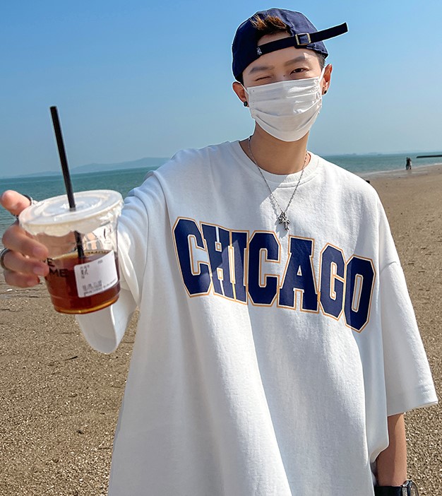 ロゴTシャツ3色半袖トップスカットソーCHICAGO白ホワイト黒ブラックレッド赤カラフルダンス衣装ヒップホップHIPHOPレディースストリート個性的奇抜おしゃれシンプルレトロ古着風ヴィンテージ