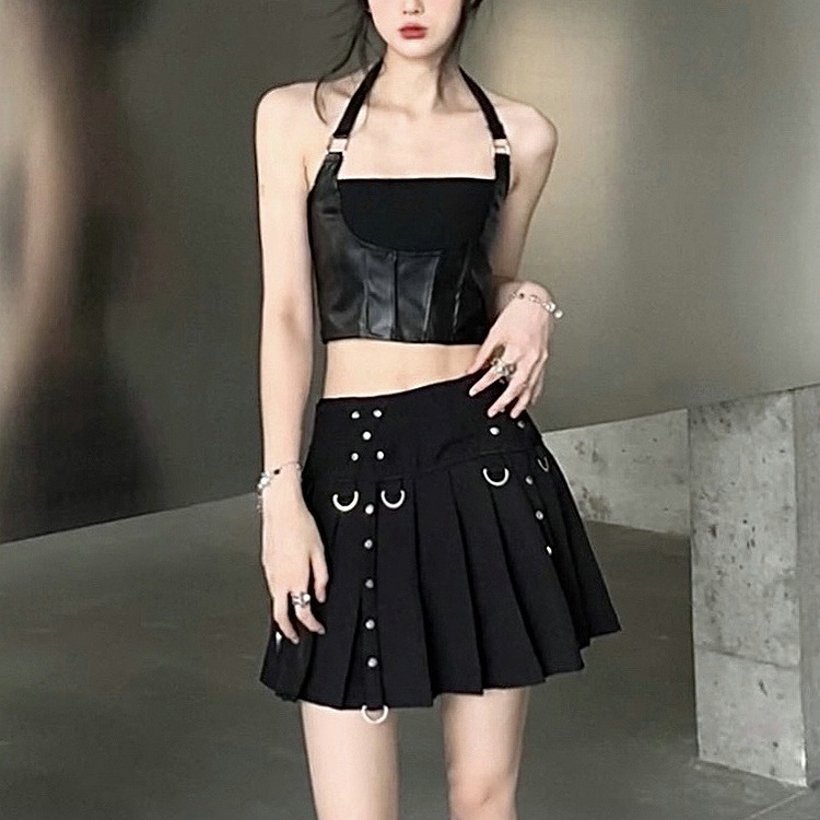 タンクトップ ショート丈 切り替え スリム セクシー 原宿系ファッション 韓国風ダンス 衣装 ヒップホップ HIPHOP 個性 奇抜 かわいい 青文字系 トップス レディース 女