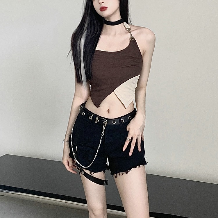 タンクトップ ショート丈 切り替え スリム 無地 原宿系ファッション 韓国風ダンス 衣装 ヒップホップ 個性 奇抜 かわいい 青文字系 トップス レディース 女