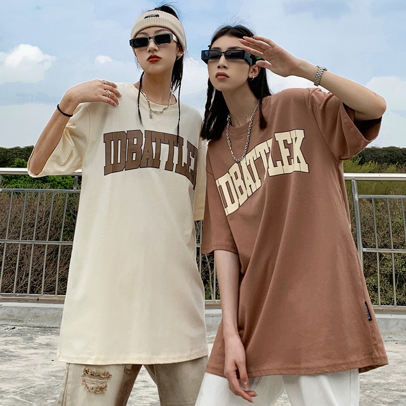 全2色 シャツ カットソー 五分 七分 半袖 切り替え 体型カバー ロゴ 英字 ユニセックス 男女兼用 原宿系ファッション 韓国風ダンス 衣装 ヒップホップ 個性 奇抜 かわ