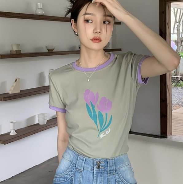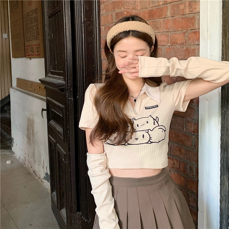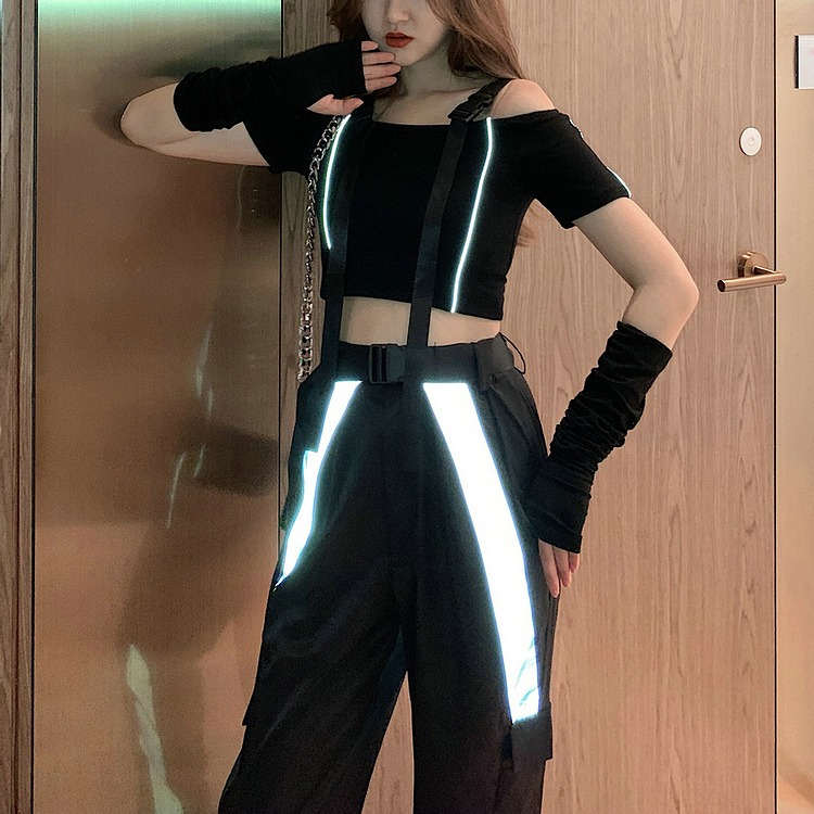 シャツ カットソー 五分 七分 半袖 ショート丈 切り替え スリム ヒップホップ 原宿系ファッション 韓国風ダンス 衣装 ヒップホップ 個性 奇抜 かわいい 青文字系 ト