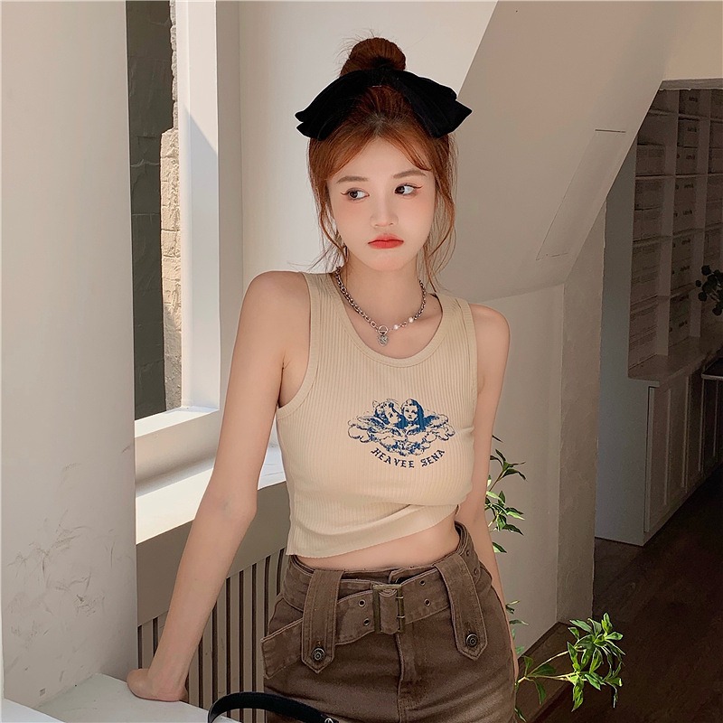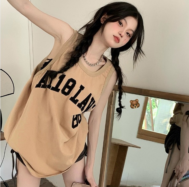 タンクトップレディースTシャツノースリーブUネックロゴプリント