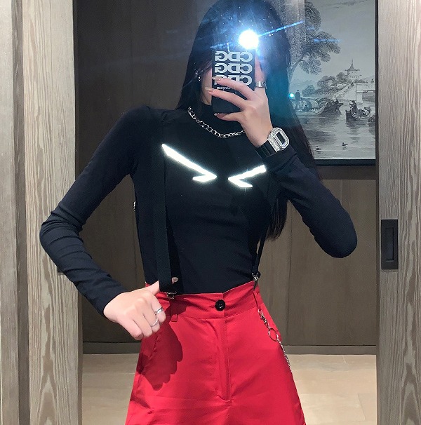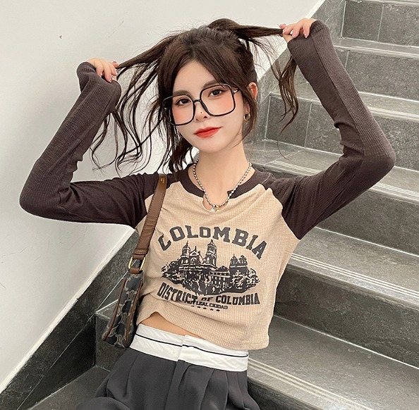 シャツ カットソー 長袖 ショート丈 切り替え スリム 無地 ヒップホップ 原宿系ファッション 韓国風ダンス 衣装 ヒップホップ 個性 奇抜 かわいい 青文字系 トップス