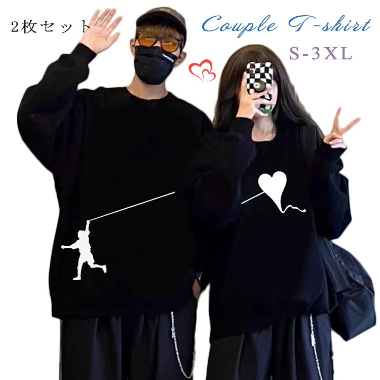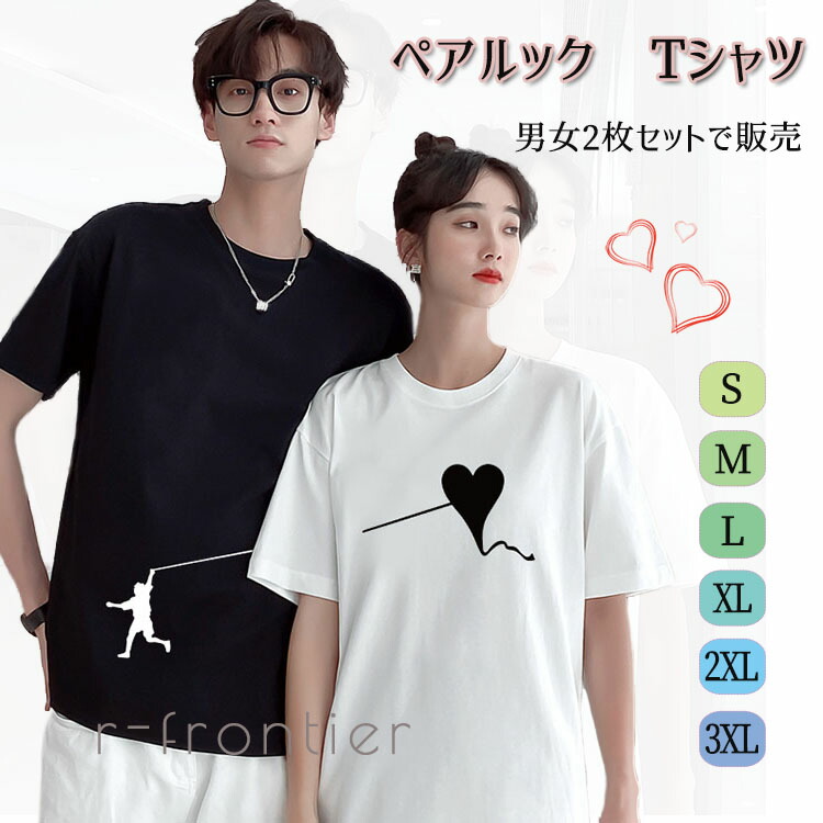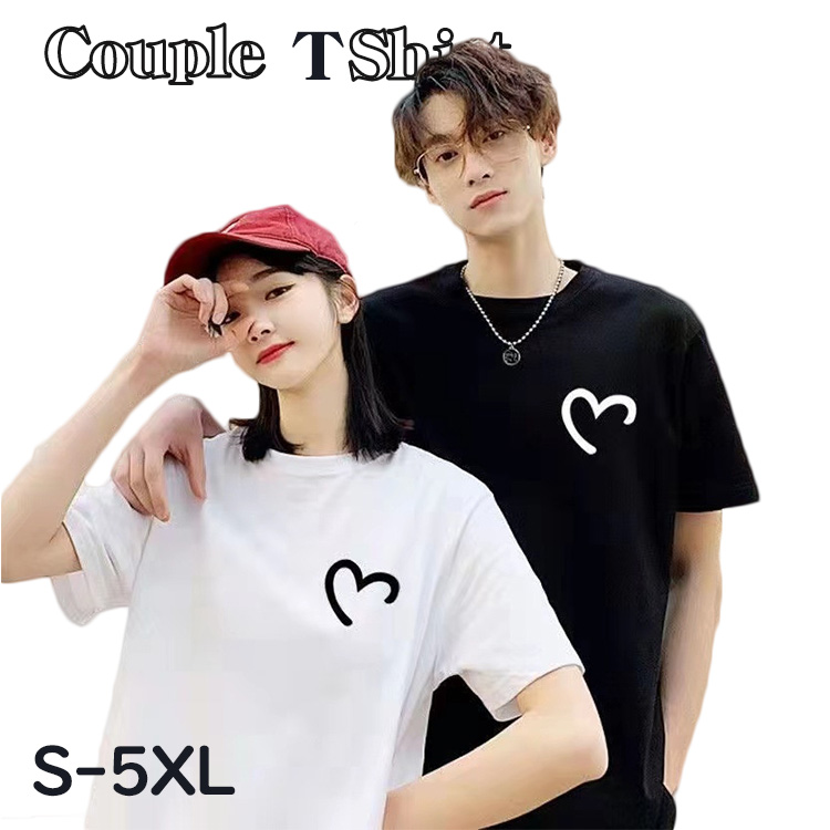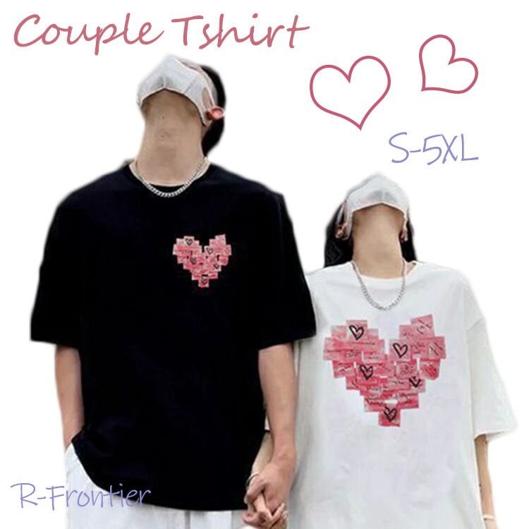 ペアルック カップル tシャツ カップル ペアルック黒 白 かっこいい ハート heart 春夏 韓国 半袖 ペア tシャツ お揃い ペアルック カップル ダサい サイズ 大きいサイズ XS 4XL